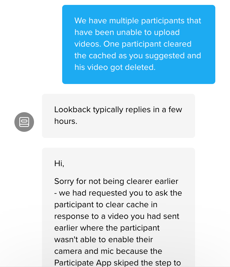 Despite contacting Lookback for solutions, we couldn’t resolve the technical issues. With players' videos not recording, I quickly sought alternatives. I explored other recording apps but found them too complex to teach players, as assuming they were tech-savvy might lead to further complications.