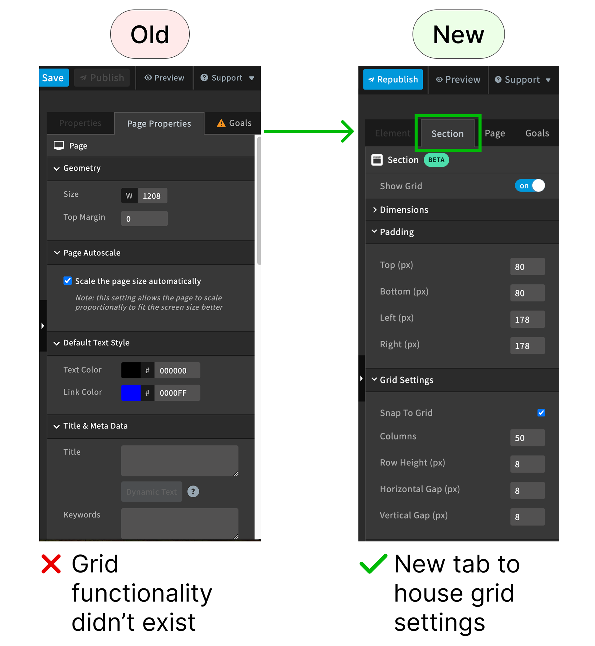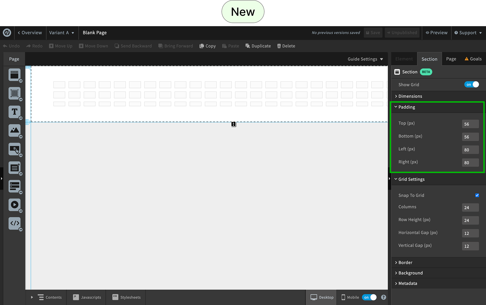To address this, we introduced a "Sections Grid" feature to reduce design friction and improve layout precision.