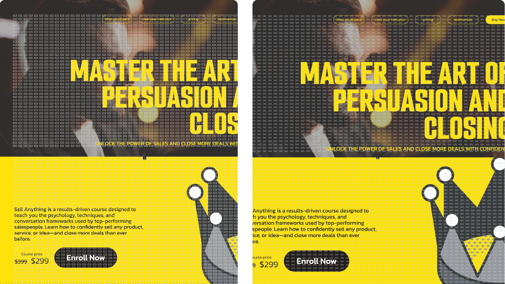 ❌ Our web builder gave users no clear way to align content and measure the distance between elements, leading to frustration, extra work, and less polished designs, as shown in the video below: