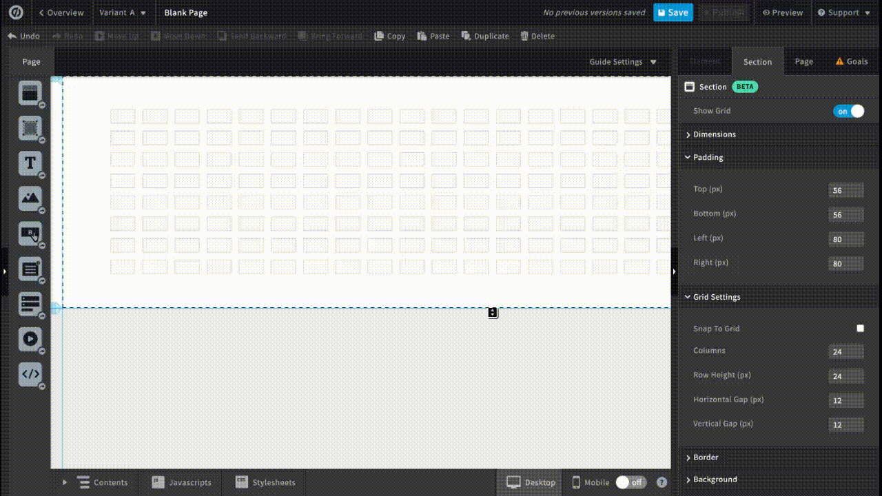 I added the ability for users to snap page elements to the grid. When the grid settings are adjusted, the page elements automatically increase or decrease in size to fit the updated grid.