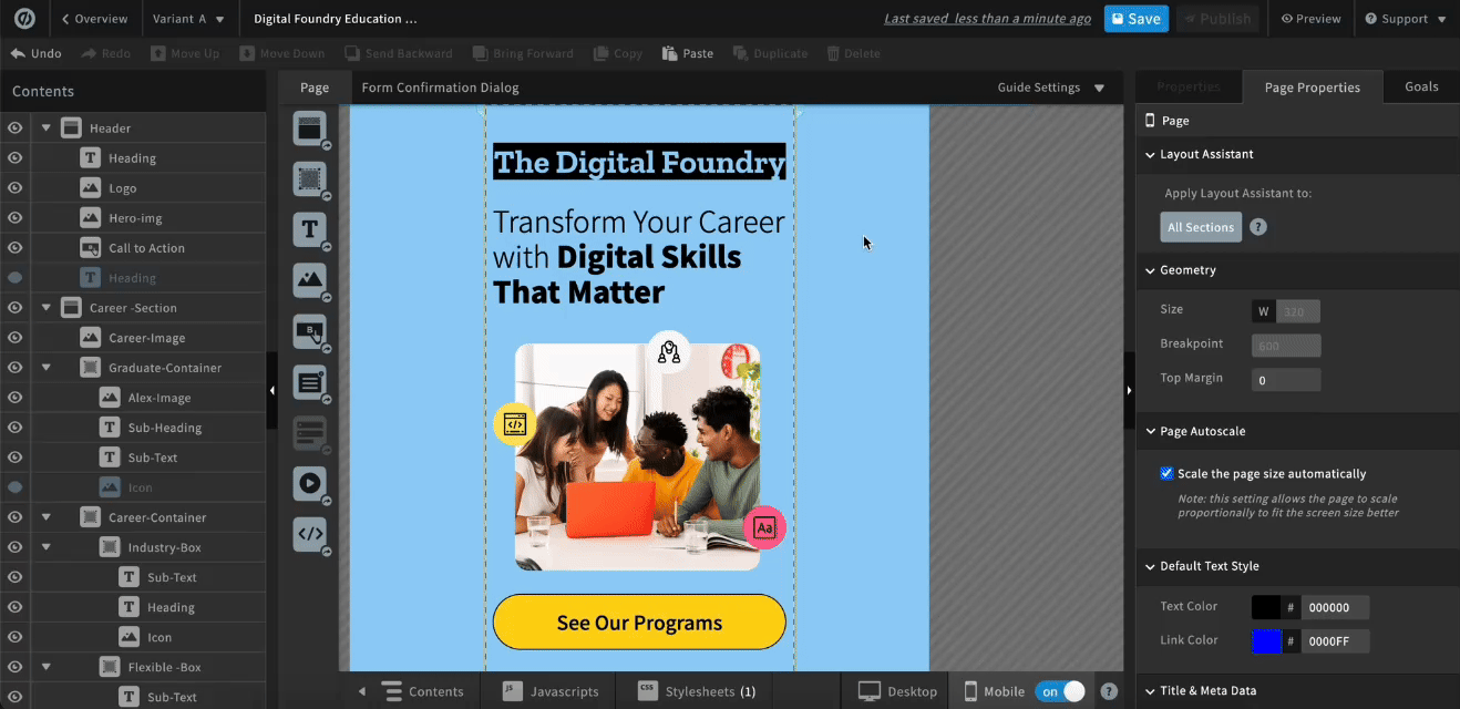However, while our drag-and-drop builder offered creative freedom, users struggled with manually aligning page elements. This slowed down the design process and made it harder for them to produce polished, professional-looking landing pages. It became clear: we needed to make page building not just possible, but effortless.