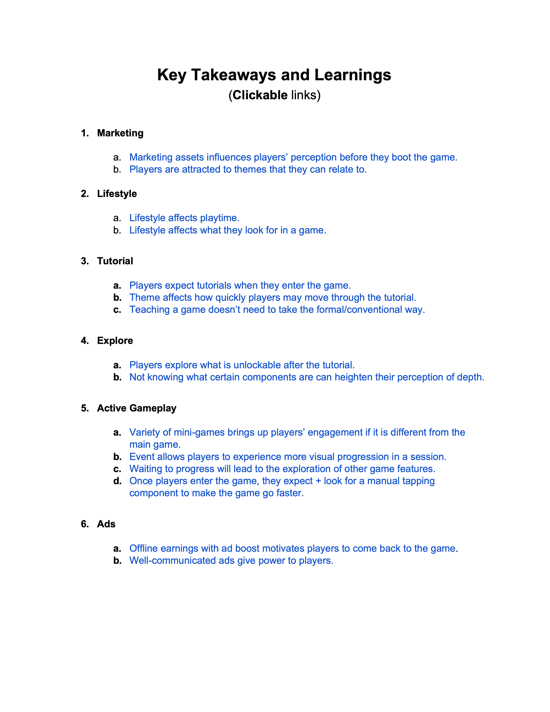 I wanted to help the game teams create a successful idle game from scratch. As a result, I took initiative and created this playbook as the sole UX researcher.